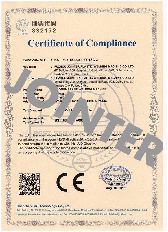 關(guān)于我們福州杰因特塑料焊接設(shè)備有限公司是中國土工合成材料工程協(xié)會會員單位之一,是2009年在福建成立的,一家專業(yè)從事塑料焊機制造的高新技術(shù)企業(yè)。公司以銳意創(chuàng)新、先進設(shè)備、保證質(zhì)量為宗旨,竭誠為客戶提供優(yōu)質(zhì)的產(chǎn)品和專業(yè)的服務(wù)。