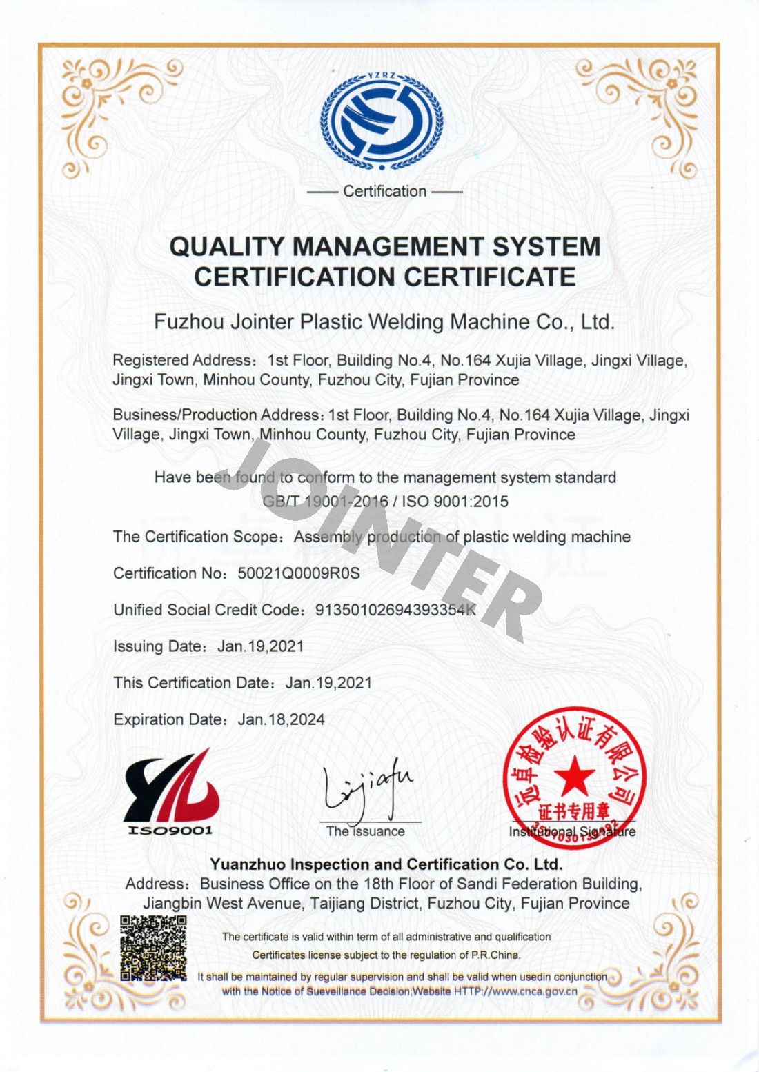 Qualification certificate資質(zhì)證書